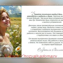 Думайте о том, что любое испытание несёт вашей душе исключительно добро, оно делает вас сильнее и опытнее.