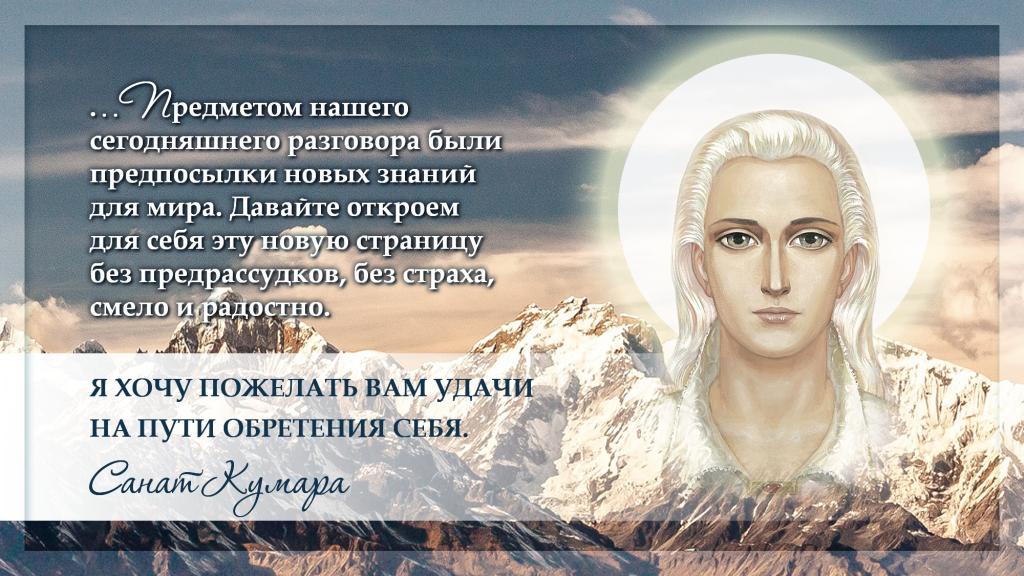<…> Предметом нашего сегодняшнего разговора были предпосылки новых знаний для мира. Давайте откроем для себя эту новую страницу без предрассудков, без страха, смело и радостно.