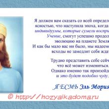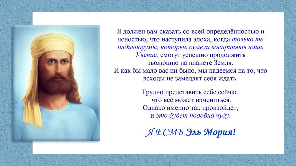 Я должен вам сказать со всей определённостью и ясностью, что наступила эпоха, когда только те индивидуумы, которые сумели воспринять наше Учение, смогут успешно продолжить эволюцию на планете Земля.