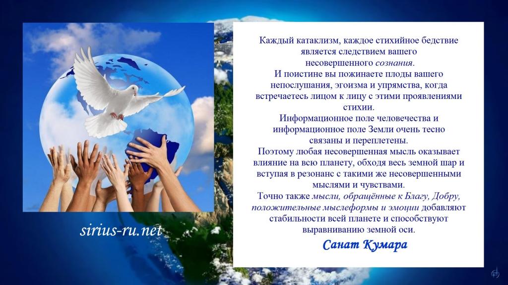 Точно также мысли, обращённые к Благу, Добру, положительные мыслеформы и эмоции добавляют стабильности всей планете и способствуют выравниванию земной оси.