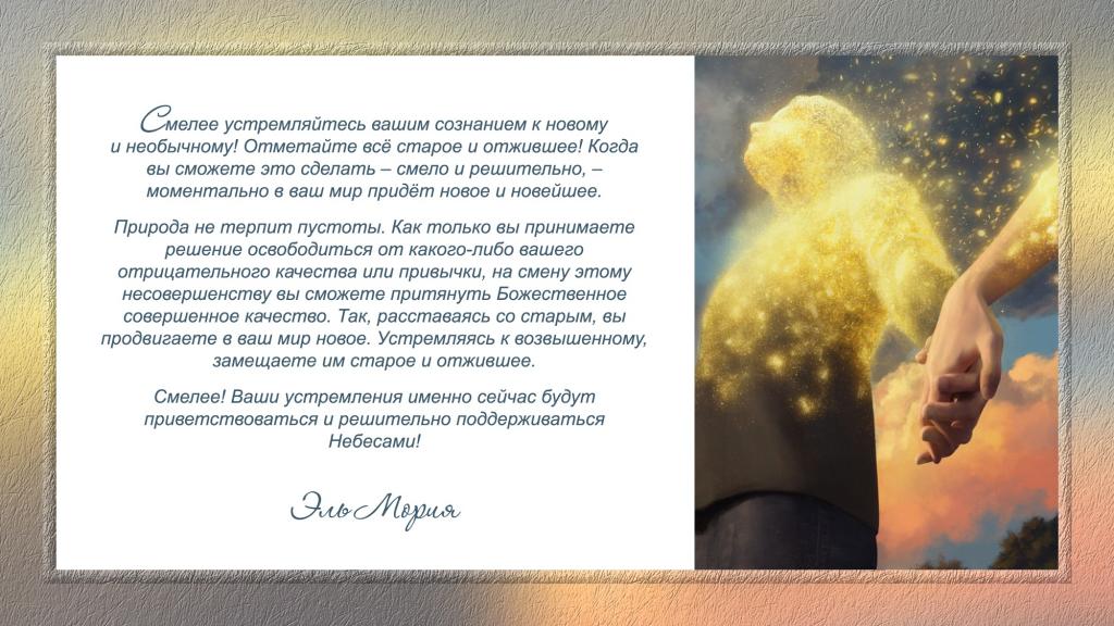 Ваши устремления именно сейчас будут приветствоваться и решительно поддерживаться Небесами! Потому что время пришло!