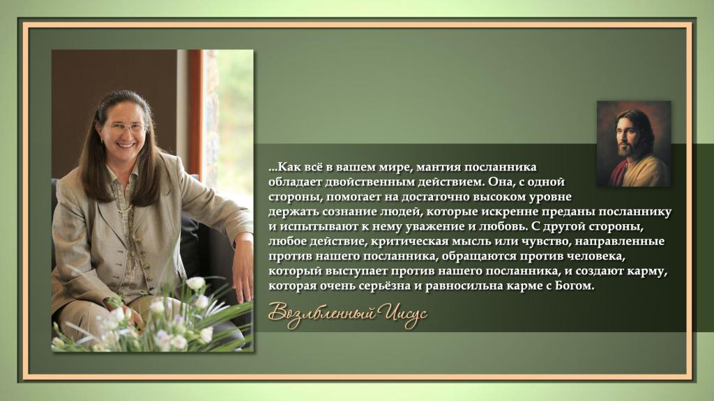 Она, с одной стороны, помогает на достаточно высоком уровне держать сознание людей, которые искренне преданы посланнику и испытывают к нему уважение и любовь.