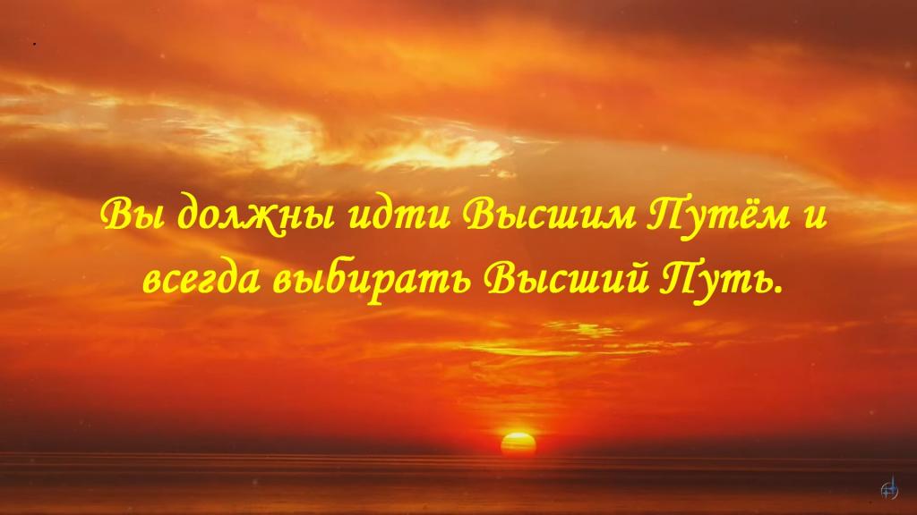 Вы должны идти Высшим Путём и всегда выбирать Высший Путь.