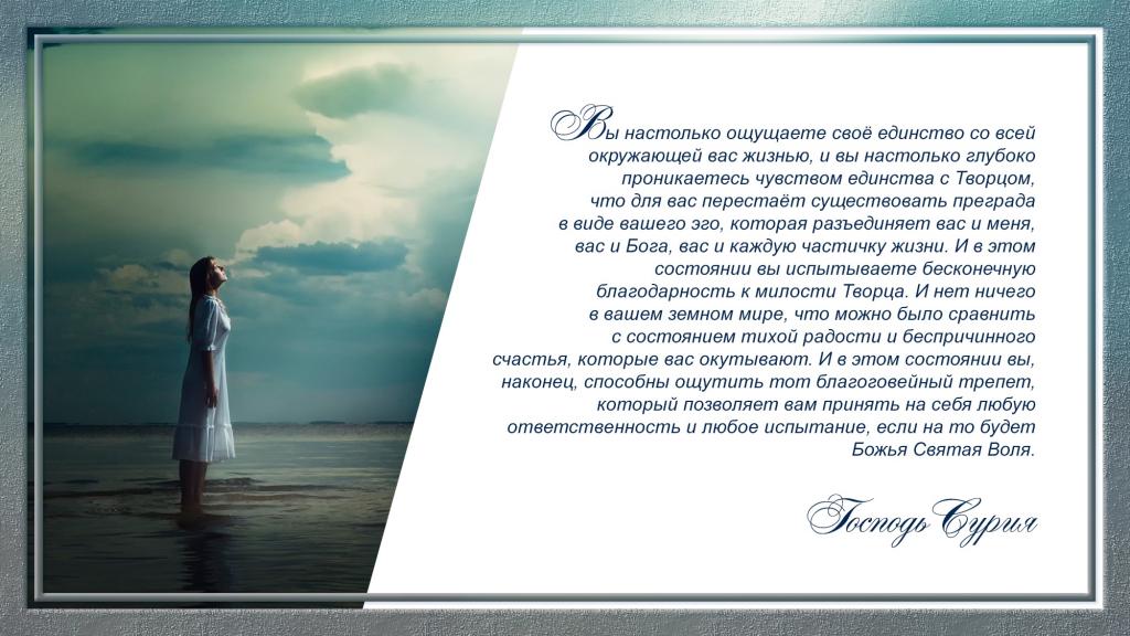 И в этом состоянии вы, наконец, способны ощутить тот благоговейный трепет, который позволяет вам принять на себя любую ответственность и любое испытание, если на то будет Божья Святая Воля.