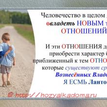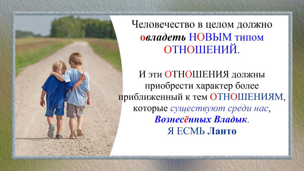 И эти ОТНОШЕНИЯ должны приобрести характер более приближенный к тем ОТНОШЕНИЯМ, которые существуют среди нас, Вознесённых Владык.