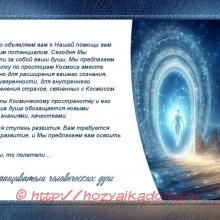 Когда вы открыты Космическому пространству и его обитателям, ваша душа обогащается новыми возможностями, знаниями, качествами.