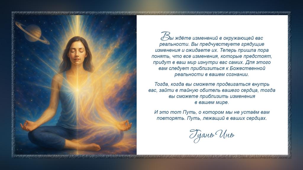 Теперь пришла пора понять, что все изменения, которые предстоят, придут в ваш мир изнутри вас самих.