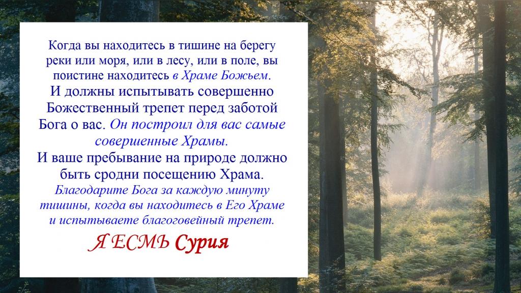 Когда вы находитесь в тишине на берегу реки или моря, или в лесу, или в поле, вы поистине находитесь в Храме Божьем.