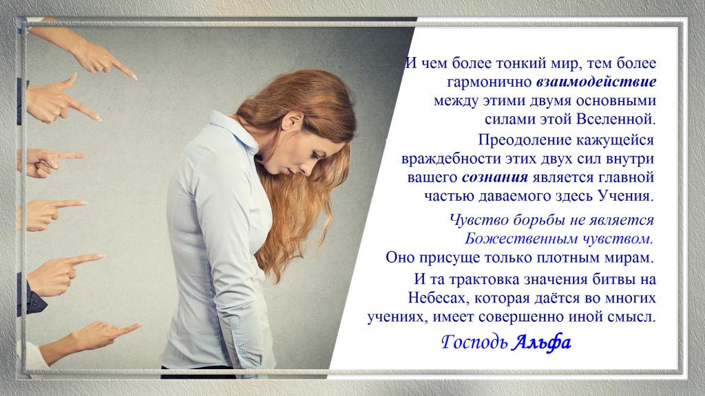 Сейчас наступил момент, когда необходимо изменить этот образ дерущихся ангелов в вашем сознании и заменить этот образ на взаимодействие двух противодействующих сил этой Вселенной.